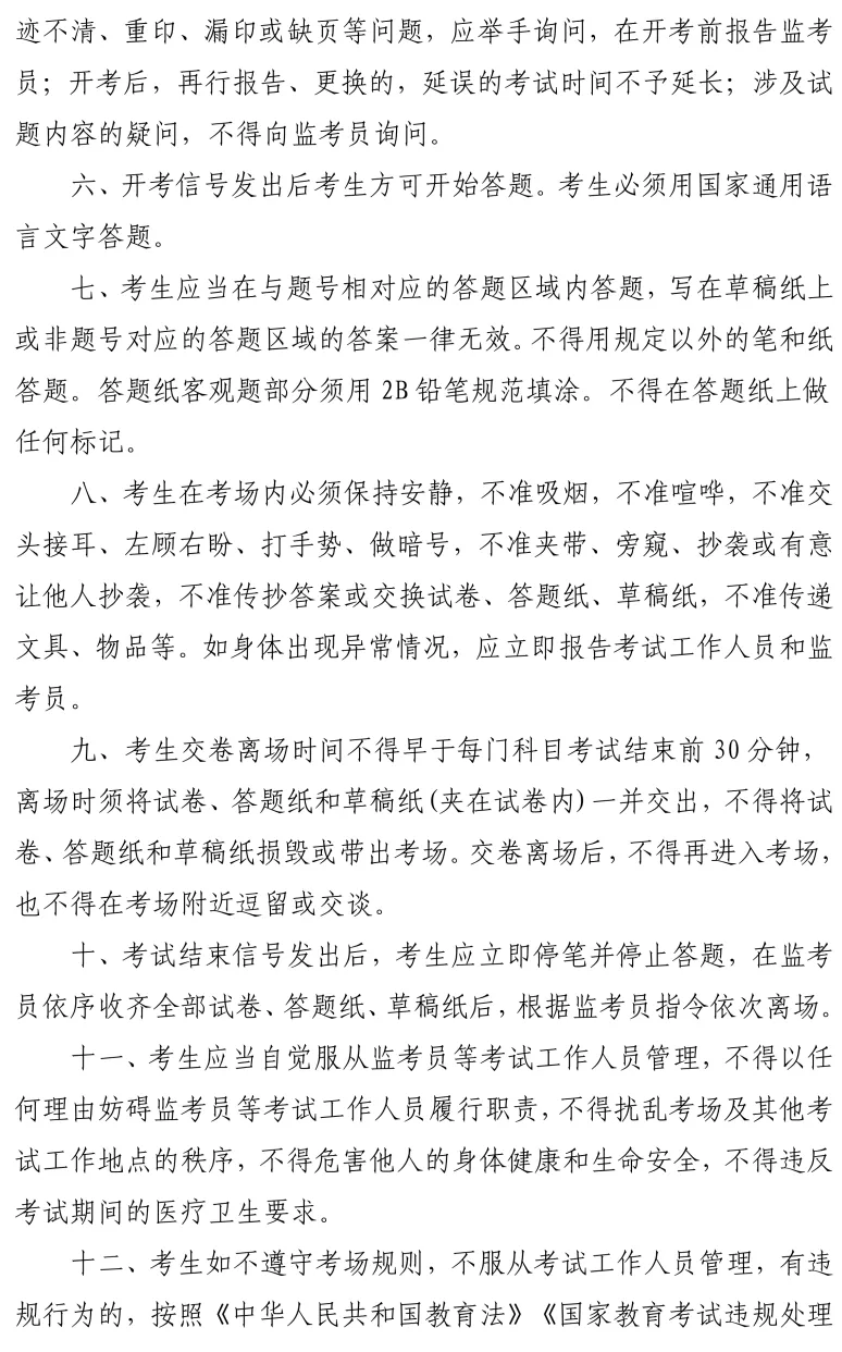 4.考生迟到15分钟后,不准进入考点参加当次科目考试;交卷出场时间不得早于每科目考试结束前30分钟。